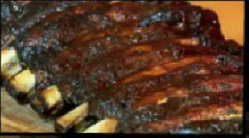 Apply sauce and slice into individual ribs and serve.
