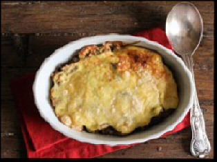 Spread the mixture out evenly in a buttered 9 x 13 casserole