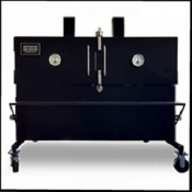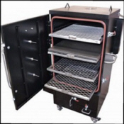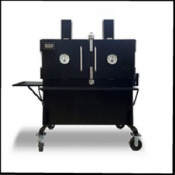 Pellet smokers come in all different sizes and shapes. From small backyard units that will hold about one pork butt to commercial units that can hold up to 800 lbs. of meat at one time. Pellet smokers are fueled by small wood pellets, available at most home improvement stores, department stores and even larger grocery stores. They come in various types of wood such as hickory, oak, pecan, apple, cherry and several others. The pellets are loaded into a side shute leading directly down to the firebox. The pellets are fed into the firebox by an electric powered auger. The auger is controlled by the temperature thermostat. Any time the smoker temperature drops below desired set temperature, the auger automatically feeds more pellets into the firebox, thus raising the temperature in the smoker. Pellet smokers are allowed in most BBQ competitions, however, they are not revered as "Real Wood Smokers" by many BBQ pitmasters due to the amount of automation involved. True wood burners or not, pellet smokers offer the real wood burning aspect of a stick burner along with the simplicity and accuracy few other smokers can offer. For this reason they are especially suited for the backyard pitmaster who doesn't want to spend their whole day tending a fire.